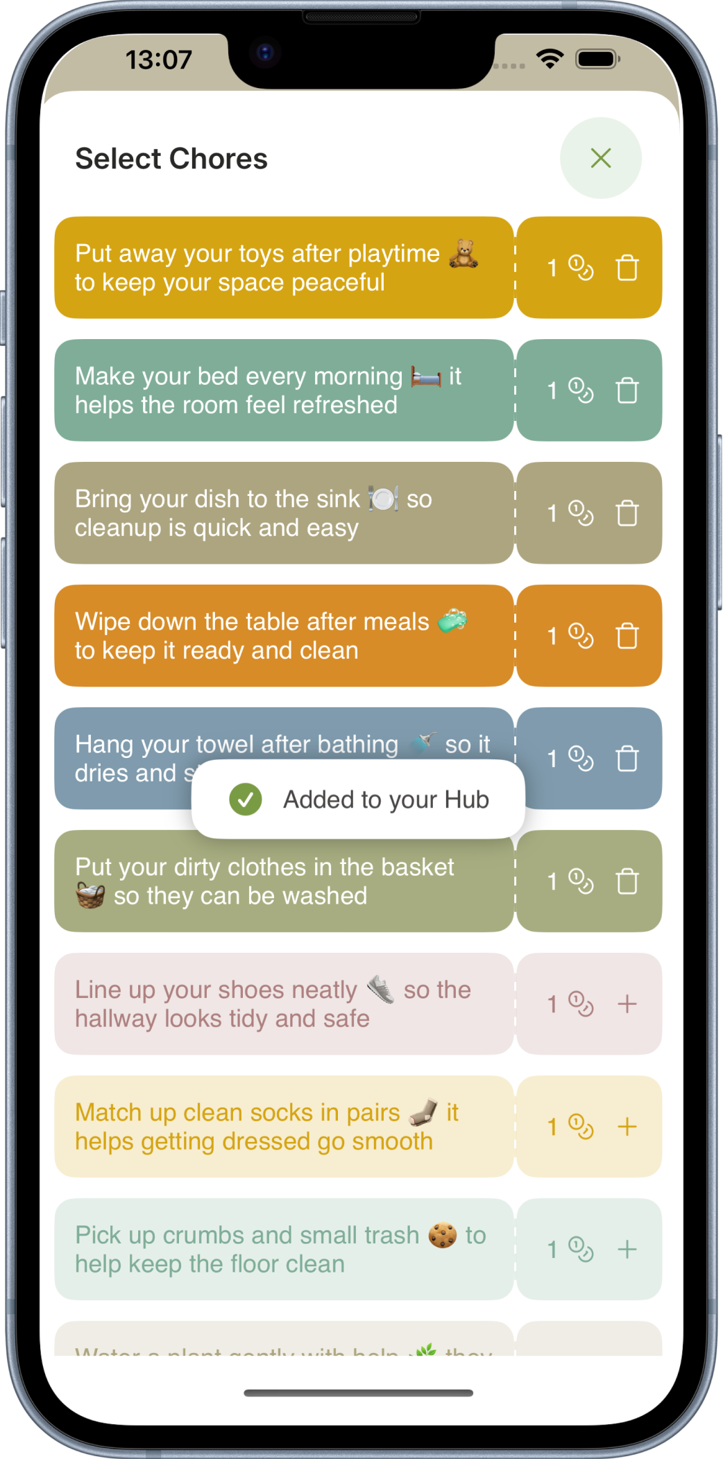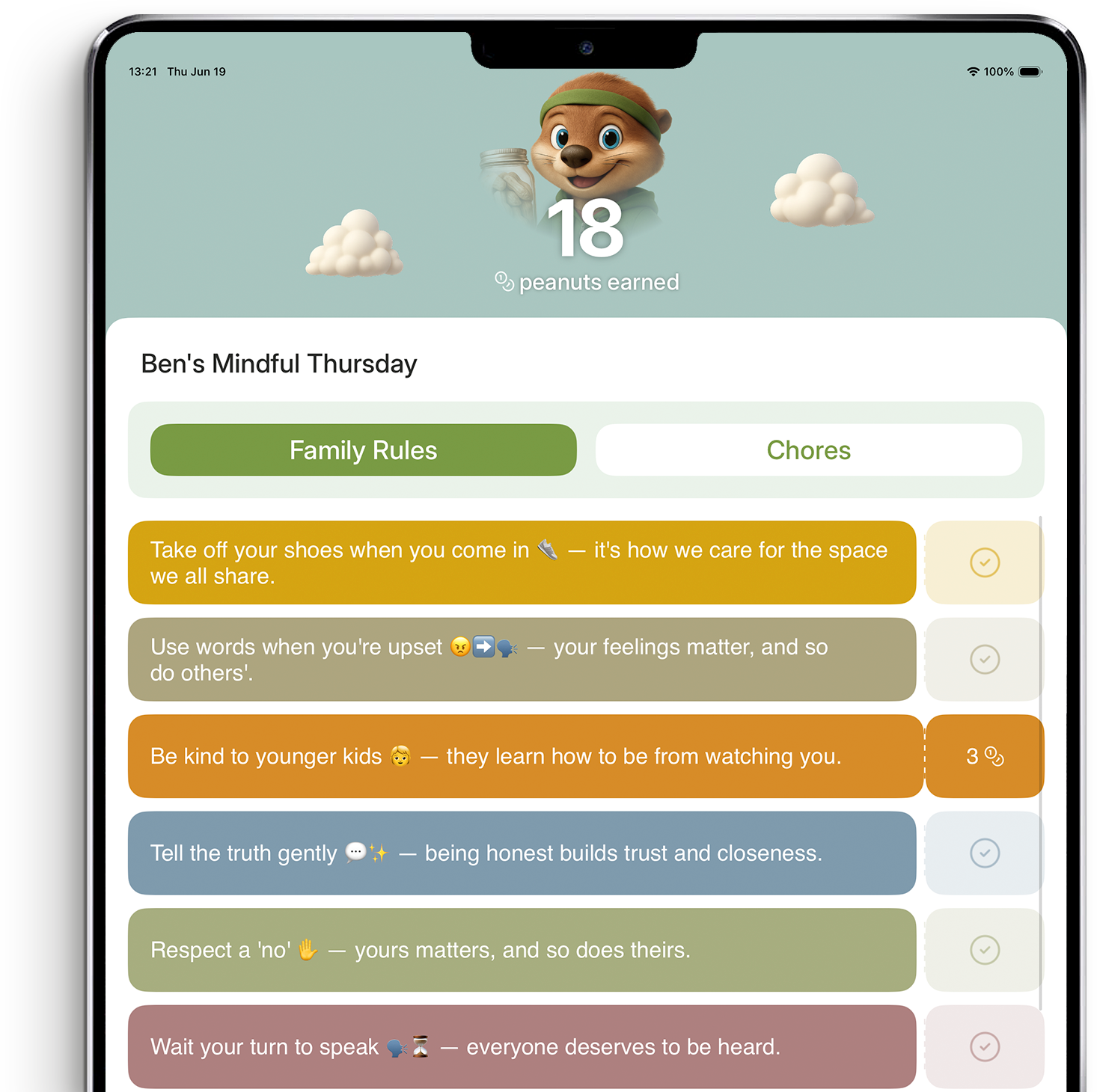 Choose from a curated set of family rules that reflect your values, and assign age-appropriate chores that strengthen connectionānot just checkboxes.